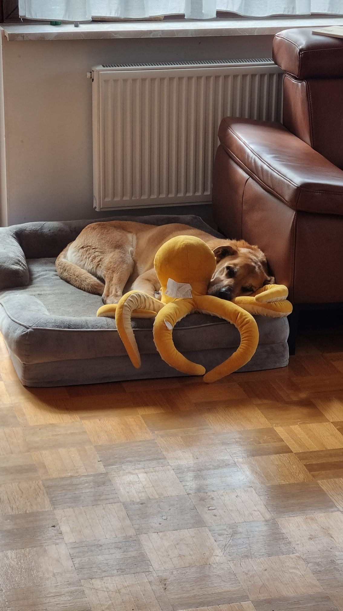 Amerigos Vorgeschichte in Italien: Amerigo kam mit seinem Bruder Jack als Welpe zu einem Bekannten von Tony. Dort wurden sie leider an einer Kette gehalten, Tony übernahm die beiden Brüder und seit dem Zeitpunkt lebten sie in der Auffangstation. Endlich konnte Amerigo im März 25 nun auf eine Pflegestelle in 72525 Münsingen reisen. Amerigo ist ein sehr aufgeschlossener und gutmütiger Hund. Freudig begrüßt er Jeden und lässt sich sehr gerne ausgiebig streicheln. Dabei hat er auch bei Fremden keine Berührungsängste. Fellpflege ist kein Problem für den lieben Rüden und er genießt es sehr, ausgiebig gestreichelt zu werden. Für Leckereien ist er immer zu haben und bei ihm geht die Liebe definitiv auch durch den Magen. Amerigo war von Anfang an stubenrein und schläft nachts ohne Probleme durch. Er macht nichts kaputt und kann gut alleine bleiben. In der Pflegefamilie lebt er zusammen mit einer Hündin. Amerigo ist mit anderen Hunden sehr verträglich und versteht sich sowohl mit Hündinnen, als auch mit Rüden sehr gut. An der Leine läuft Amerigo schön und er freut sich sehr über die willkommene Abwechselung. Dabei ist er aufgrund seines Alters eher gemütlich unterwegs. Lange Wanderungen sind mit Amerigo nicht mehr möglich, aber schöne entspannte Spazierrunden findet er ganz toll. Amerigo liebt es rauszugehen und steht sofort parat, wenn man sich auf den Weg macht. Er zeigt keinerlei Jagdtrieb und hat auch mit Katzen kein Problem. Fremden Hunden begegnet Amerigo gelassen an der Leine und auch vor Umweltreizen (z.B. laute Autos etc.) hat er keine Angst. Für den sanften Rüden suchen wir eine Familie, gerne mit Garten, in ländlicherer Umgebung. Zu viele Stufen sollten im neuen Zuhause nicht vorhanden sein. Er ist ein recht ausgeglichener Hund und hätte sicher nichts gegen einen Hundekumpel an seiner Seite. Aber auch als Einzelhund wäre er zufrieden, Hauptsache an der Seite von lieben Menschen. Wir hoffen auf ein Leben bei "seinem" Menschen, ein Leben mit Beschäftigung, Abenteuer und ganz viel Liebe die er nur zu gern erwidern würde. Er wäre der ideale Hund für ältere Menschen. Amerigo ist kastriert, geimpft, besitzt einen Microchip und EU-Heimtierausweis. Vor Einreise wurde er auf Mittelmeerkrankheiten getestet. Er wartet in 72525 Münsingen auf Besuch.