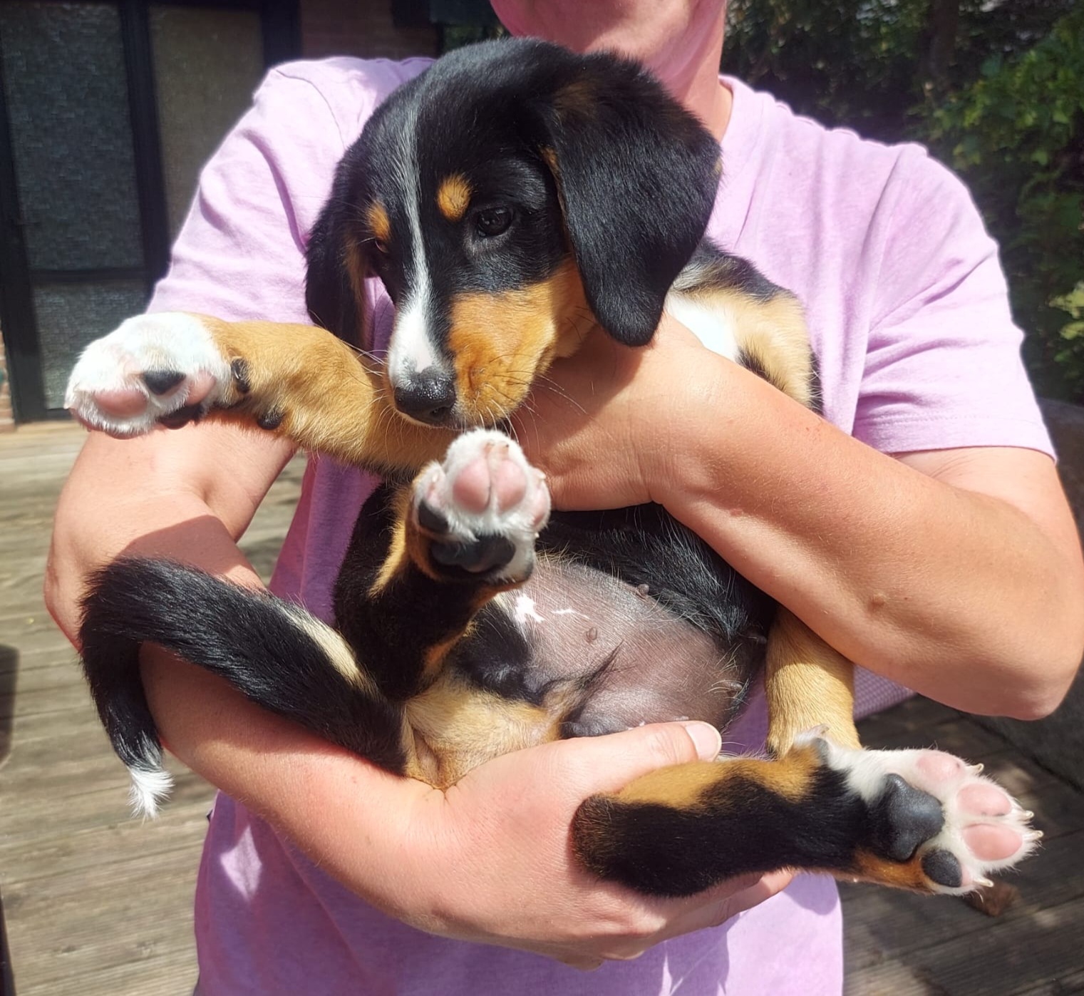 Am 12.5. hat unsere Frida 7 kerngesunde Welpen zur Welt gebracht. Ein kleines bildhübsches Mädchen sucht ab Anfang August noch ein neues Zuhause. Da Sennenhunde Hütehunde sind, bleiben sie nicht gerne lange alleine. Sie sind sehr temperamentvoll, familienbezogen und brauchen Beschäftigung, vor allem für den Kopf. Daher legen wir viel Wert darauf, dass unsere kleine Maus in eine Familie kommt, die viel Zeit für sie hat.