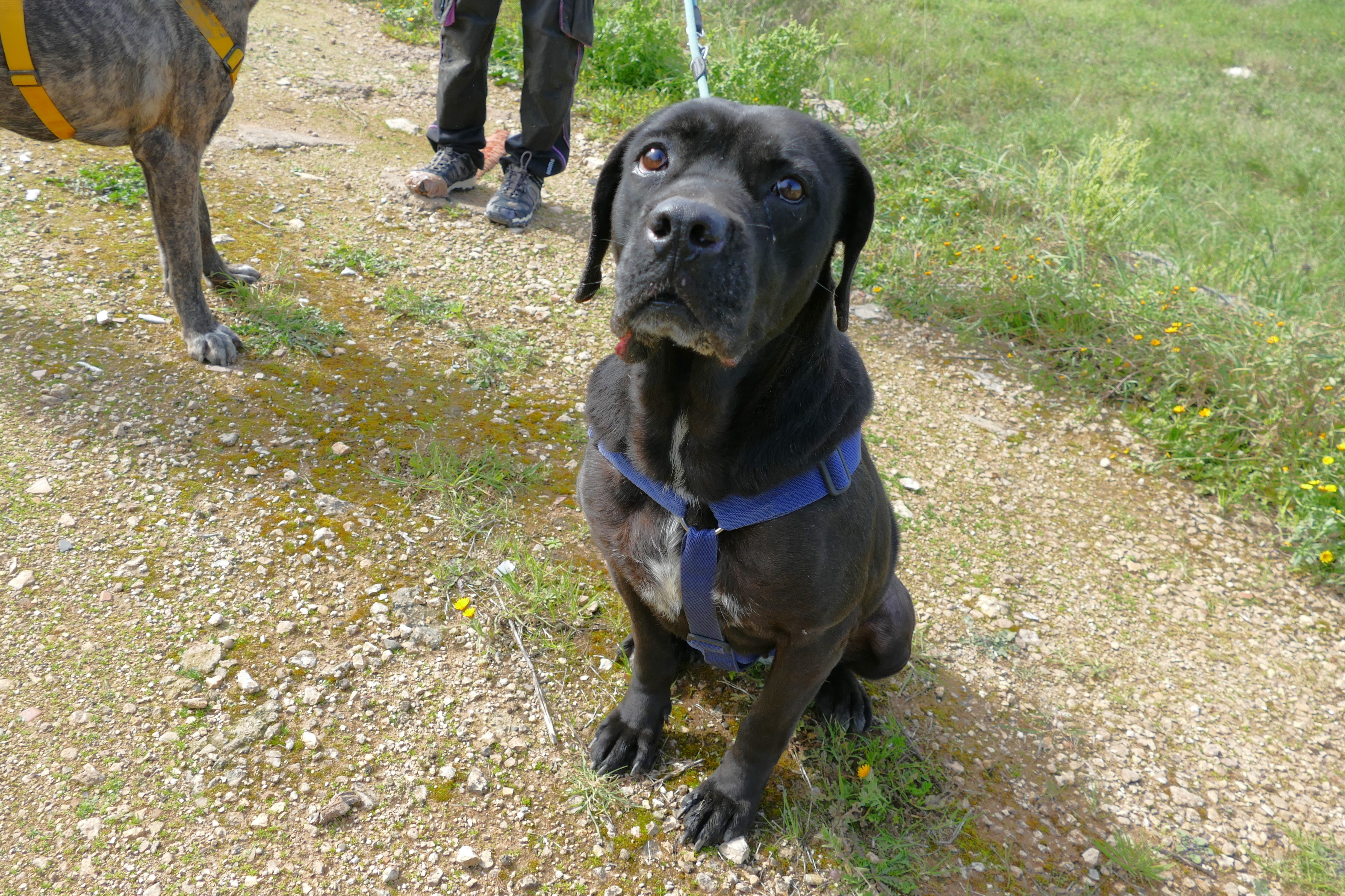 Die kleinere Cane Corso Hündin Arena wurde damals alleine auf dem Land aufgefunden. Sie war sehr dünn und abgemagert. Seit 2020 ist sie nun im Tierheim. Arena ist eine sehr anhängliche und menschenbezogene Hündin. Bei neuen Menschen zeigt sie sich anfangs etwas schüchtern, taut aber schnell auf und lässt sich gerne streicheln. Sie ist eine ruhige Hündin und versteht sich gut mit Rüden. An der Leine zeigt sich Arena vorbildlich und auch die Tierschützer beschreiben sie als sehr folgsam. Arena läuft gut an der Leine und freut sich sehr, dem Tierheimtrubel für einen Spaziergang zu entkommen. Sie sitzt schon so lange dort und braucht dringend ein Zuhause. Arena hat nur einen Stummelschwanz und kann deshalb nicht in die Schweiz vermittelt werden.