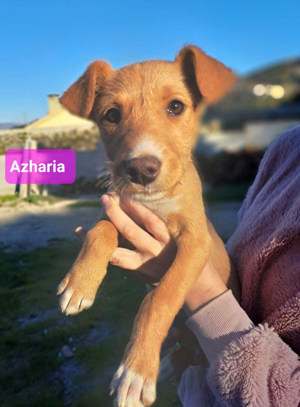 Azharia kennt nichts außerhalb der Welpenstation. Alltagsgeräusche wie von Staubsauger oder Fön und auch das Aurofahren sind ihr unbekannt. Auch stubenrein wird sie nicht sein. Wir sind aber sicher, dass Azharia all das bei Ihnen schnell lernen wird.