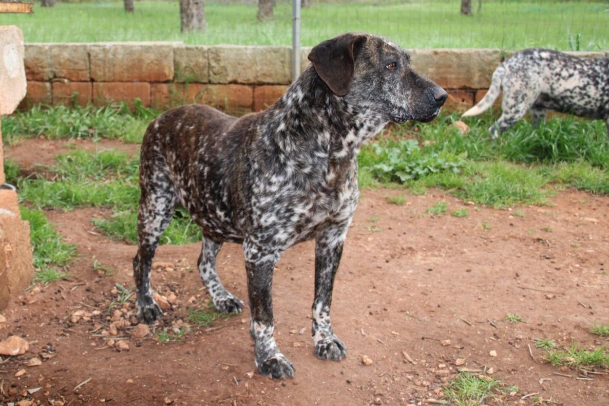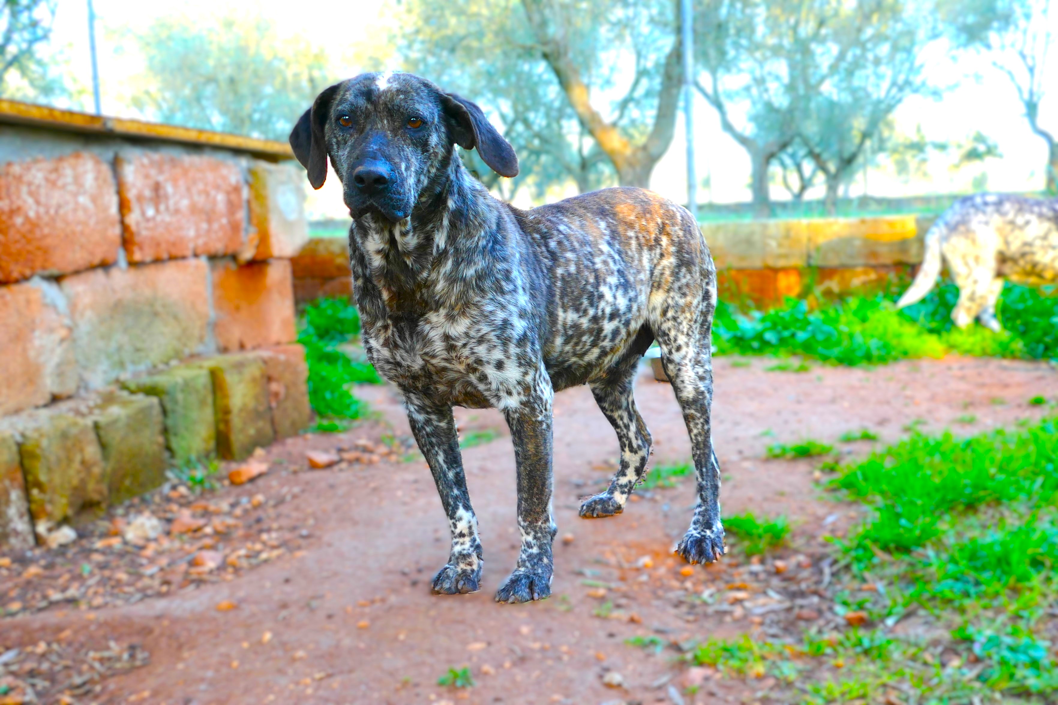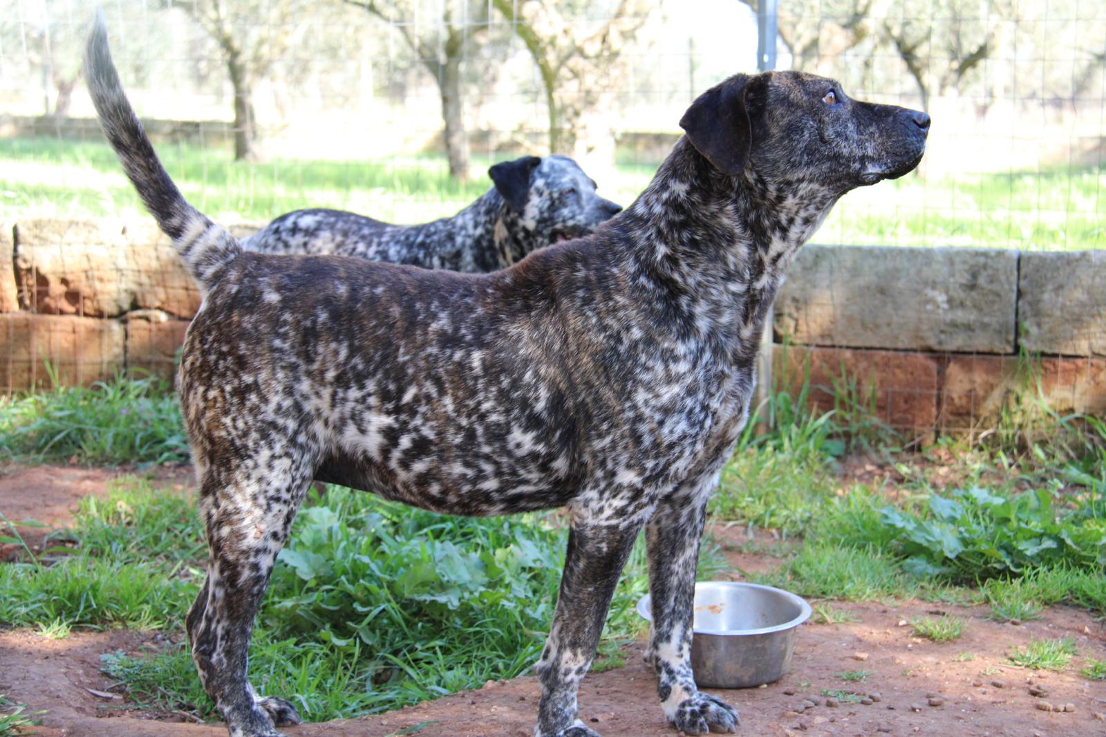 Cecia und ihre Schwester Cera stammen aus einem Tierheim in Kalabrien. Vermutlich wuchsen die beiden Schwestern dort auf und haben die ganzen Jahre hinter Gittern auf Betonboden verbringen müssen. Als das Tierheim geschlossen wurde, konnten unter anderem die Beiden in unser Refugium zu Tony ziehen. Cecia ist eine außergewöhnlich schöne kleinere Hündin mit einer seltenen Fellzeichnung. Sie ist nicht nur schwarz- weiß gesprenkelt – so wie die Schwester – sondern auch braun gestreift auf dem Rücken. Von den Schwestern ist sie die Aufgeschlossene. Cecia kommt sofort her und freut sich sehr über jeden Kontakt zu Menschen. Sie liebt es gestreichelt zu werden und genießt die Aufmerksamkeit. Cecia ist eine eher ruhige Hündin, aber man merkt ihr das Alter überhaupt nicht an. Wir hätten sie deutlich jünger geschätzt. Cecia versteht sich mit anderen Hunden, hat aber gerne das Sagen. Im neuen Zuhause braucht sie deshalb keinen weiteren Hund. Viel wichtiger sind ihr die Menschen. Wir suchen für sie ein eher ruhiges Zuhause in ländlichem Umfeld. Sie kann gerne auch zu Rentnern ziehen. Wir können uns Cecia mit ihrem freundlichen Charakter in jeder Art von Familie vorstellen. Mit der nötigen Geduld der neuen Familie kann sie zu größeren Kindern und auch zu Hundeanfänger*innen. Cecia ist bereit, all das zu lernen. Wichtig ist nur, dass ihre zukünftigen Menschen ebenso lernbegeistert, neugierig, geduldig und bereit dazu sind, genauso viel über die Hundewelt zu lernen. Wir würden uns für Cecia und ihre Schwester wünschen, dass sie eine Chance bekommt, adoptiert zu werden. Sie soll noch etwas anderes erleben dürfen als das Leben hinter Gittern.