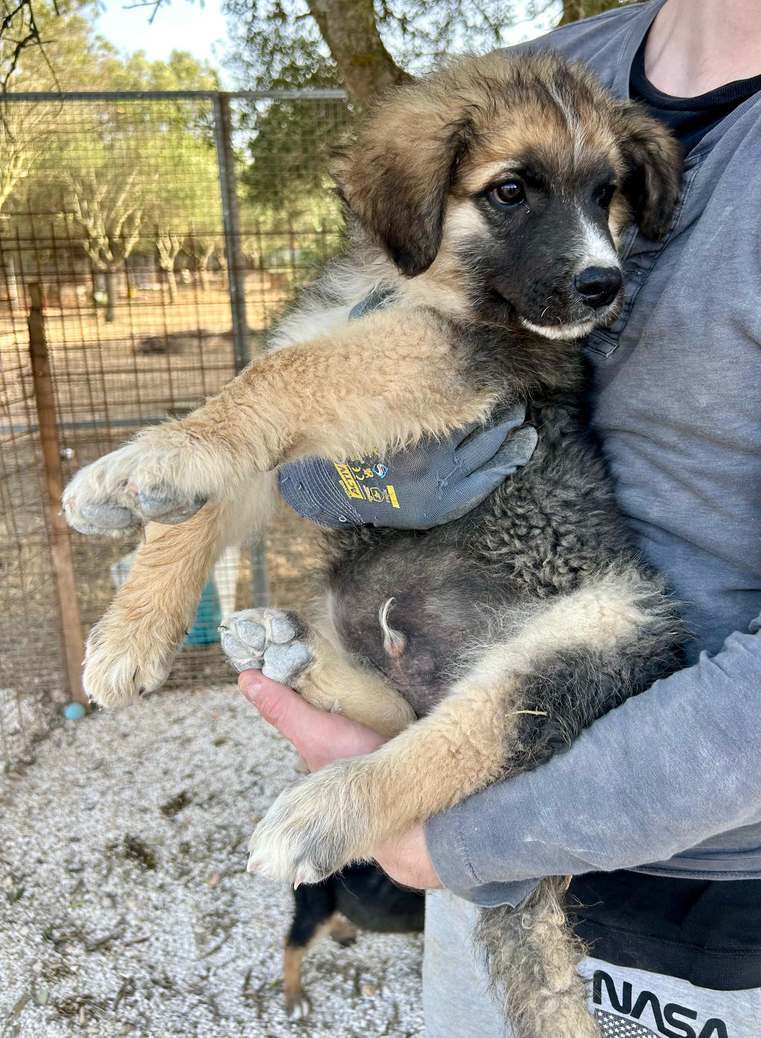 Auch diese vier Geschwister ereilte das leider für viele Hunde in Italien traurige Schicksal. Kaum auf der Welt, wurden sie schon ausgesetzt. Ganz alleine, mitten im Nirgendwo, getrennt von der Mutter. Zum Glück wurden sie gefunden. Und obwohl das Refugium brechend voll ist, konnte Tony nicht wegschauen und sicherte Hilfe zu. Die ersten Wochen wurden die Kleinen auf einer privaten Pflegestelle untergebracht. Sie mussten noch mit der Flasche gefüttert werden, was für die Tierschützerin einige schlaflose Nächte bedeutete. Nun sind die vier deutlich gewachsen und befinden sich im Refugium. Langsam aber sicher machen sie sich nun auf die Suche nach einem liebevollen Zuhause. Elay ist ein äußerst zugänglicher und verschmuster Welpe. Er hält stets Ausschau nach dem nächsten Menschen, dem er seine Zuneigung zeigen kann. Genau wie sein Bruder Eddie, liebt Elay Leckerlies über alles. Welpentypisch knabbert er gerne an allem, was er findet, und hat eine besondere Vorliebe dafür, mit seinen Pfoten im Wasser zu spielen. Elay bringt mit seiner liebevollen und verspielten Art Freude in jede Umgebung und freut sich darauf, eine eigene Familie zu finden. Die Geschwister sind noch Babys und benötigen viel Zeit und Geduld, damit sie alles Schritt für Schritt kennenlernen können, was die große Welt mit sich bringt. Bisher konnten sie noch nicht viel erleben und sie warten nun darauf, adoptiert zu werden. Aktuell können wir uns die Welpen in jeder Art von Familie vorstellen. Mit der nötigen Geduld der neuen Familie können sie zu Kindern, einem weiteren Hund, Katzen und auch Hundeanfänger*innen. Die Geschwister sind bereit, all das zu lernen. Wichtig ist nur, dass ihre zukünftigen Menschen ebenso lernbegeistert, neugierig, geduldig und bereit dazu sind, genauso viel über die Hundewelt zu lernen. Unsere Hunde reisen mit deutschem Transportunternehmen, sind geimpft, parasitär behandelt, besitzen einen Microchip und EU-Heimtierausweis. Ab einem Alter von ca. 1 Jahr werden die Hunde kastriert vermittelt. Wichtig! Hunde, die direkt aus der Auffangstation vermittelt werden, kennen oft nicht mehr als das Gehege/die Pflegestelle und die Gegebenheiten dort. Wir können sie nur so beschreiben, wie sie sich vor Ort verhalten. Die Hunde sind nicht stubenrein, kennen es nicht, an der Leine zu laufen, und kennen keine Kommandos. Deshalb reagieren sie anfangs manchmal ängstlich, scheu oder schreckhaft.