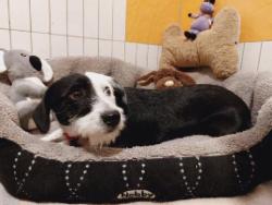 Emmi, Ebby und Enjoy sind Schwestern. Sie wurden mit ein paar Wochen zum Jahreswechsel 2021/2022 einfach herzlos entsorgt, indem sie in einem zugebundenen Pappkarton an die Tür unseres Partnertierheimes gestellt und dort zurückgelassen wurden. Sie hätten besser damals noch ein paar Wochen im Rudel ihrer Hundefamilie bleiben sollen, wären noch ab und zu zusätzlich gesäugt worden und hätten eine längere Sozialisation erfahren. Aber <hätte, wäre, würde, sollte> halfen ihnen nicht, und so wurden sie natürlich mit Dringlichkeitsstufe im Tierheim aufgenommen, unter die Rotlichtlampe gelegt, gefüttert und bei Kräften gehalten. Zu ihrem Glück waren sie ja zu dritt, und die eine oder andere „Tante“ auf vier Pfötchen half an Mutterstelle gerne aus, so dass die drei Süßen eine recht gute Kinderstube hatten. Im Alter von 12 Wochen gab es dann nach und nach Kontakte zu allen möglichen anderen Tierheimmitbewohnern, so dass die drei viele verschiedene Hundetypen kennen lernen konnten, verstehen mussten, dass mancher Hundesenior so einen Zwerg äußerst lästig findet und seine Ruhe haben möchte, andere ausgewachsene Hunde gerne mitgetobt haben, manch einer schneller oder stärker war, als man selbst und dass Welpen eben auch den einen oder anderen Rüffel wegstecken müssen, wenn sie sich „danebenbenehmen“.
