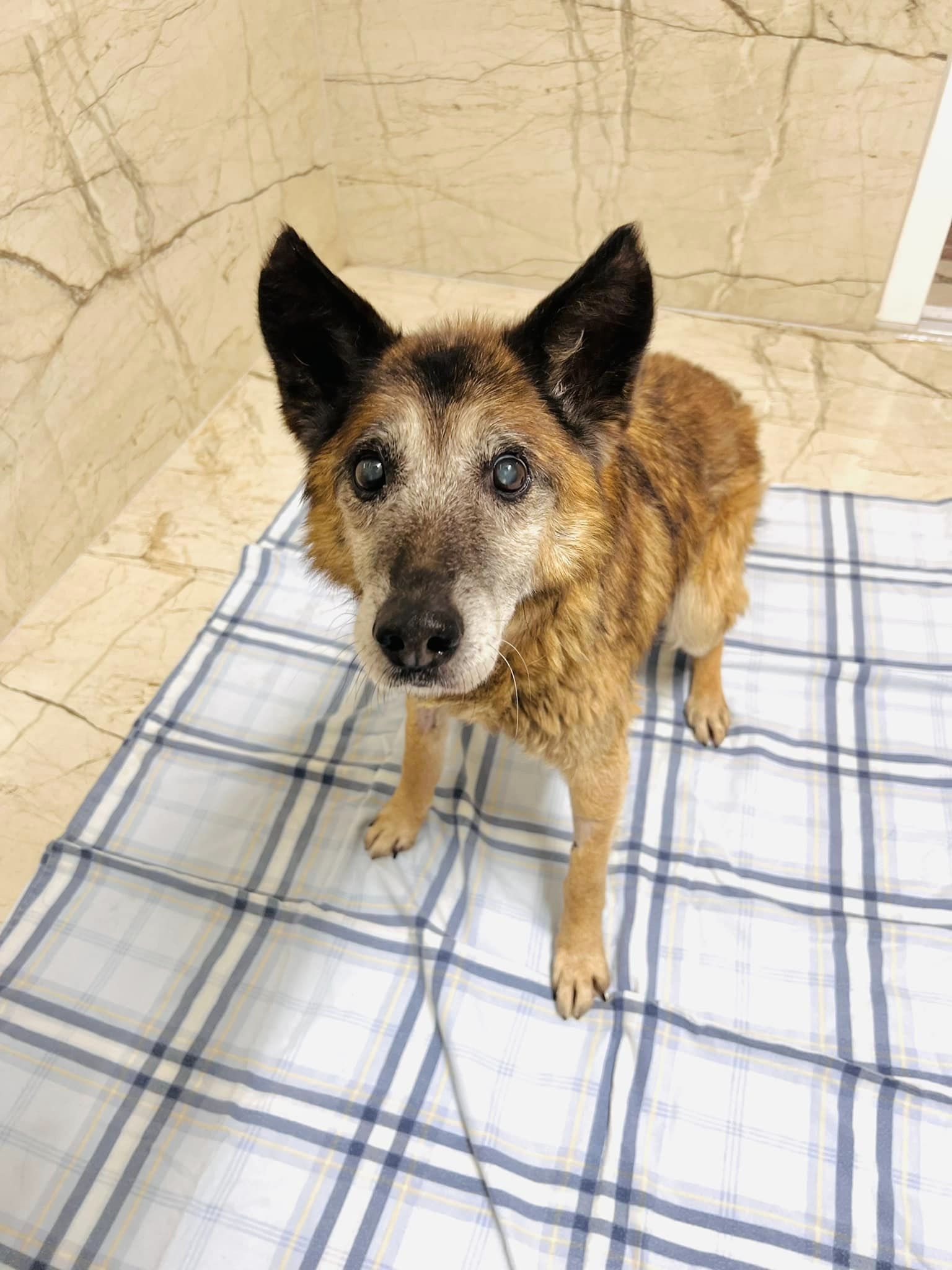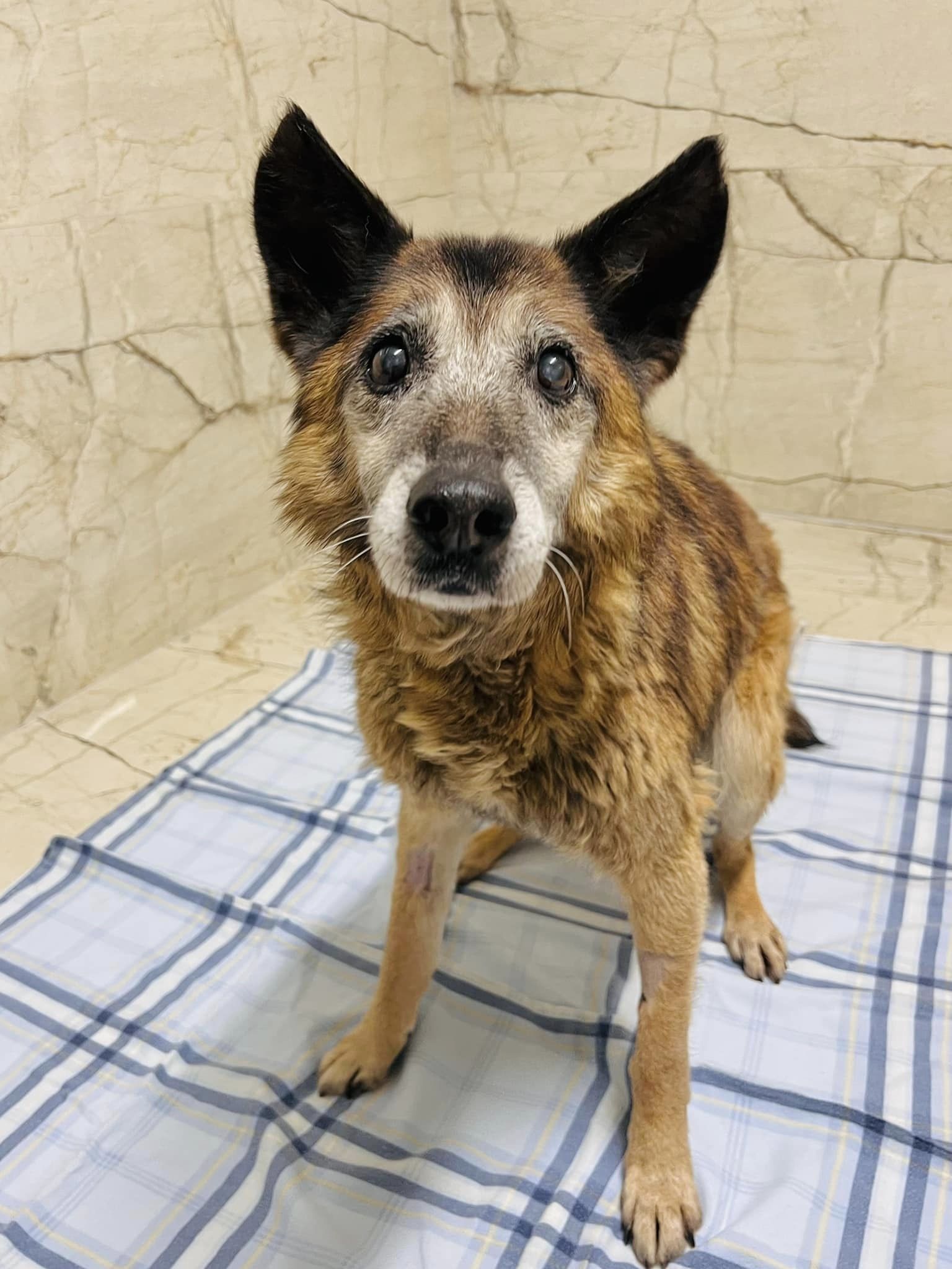 Buffalo ist ein 17-jähriger Malinois-Mix, der geschwächt und abgemagert auf der Straße gefunden wurde. Bevor er ins Shelter einziehen konnte, musste er erstmal ein paar Tage in der Tierklinik verbringen. Er wurde mit einer akuten Pankreatitis eingeliefert und wurde als fideler Hund wieder entlassen.