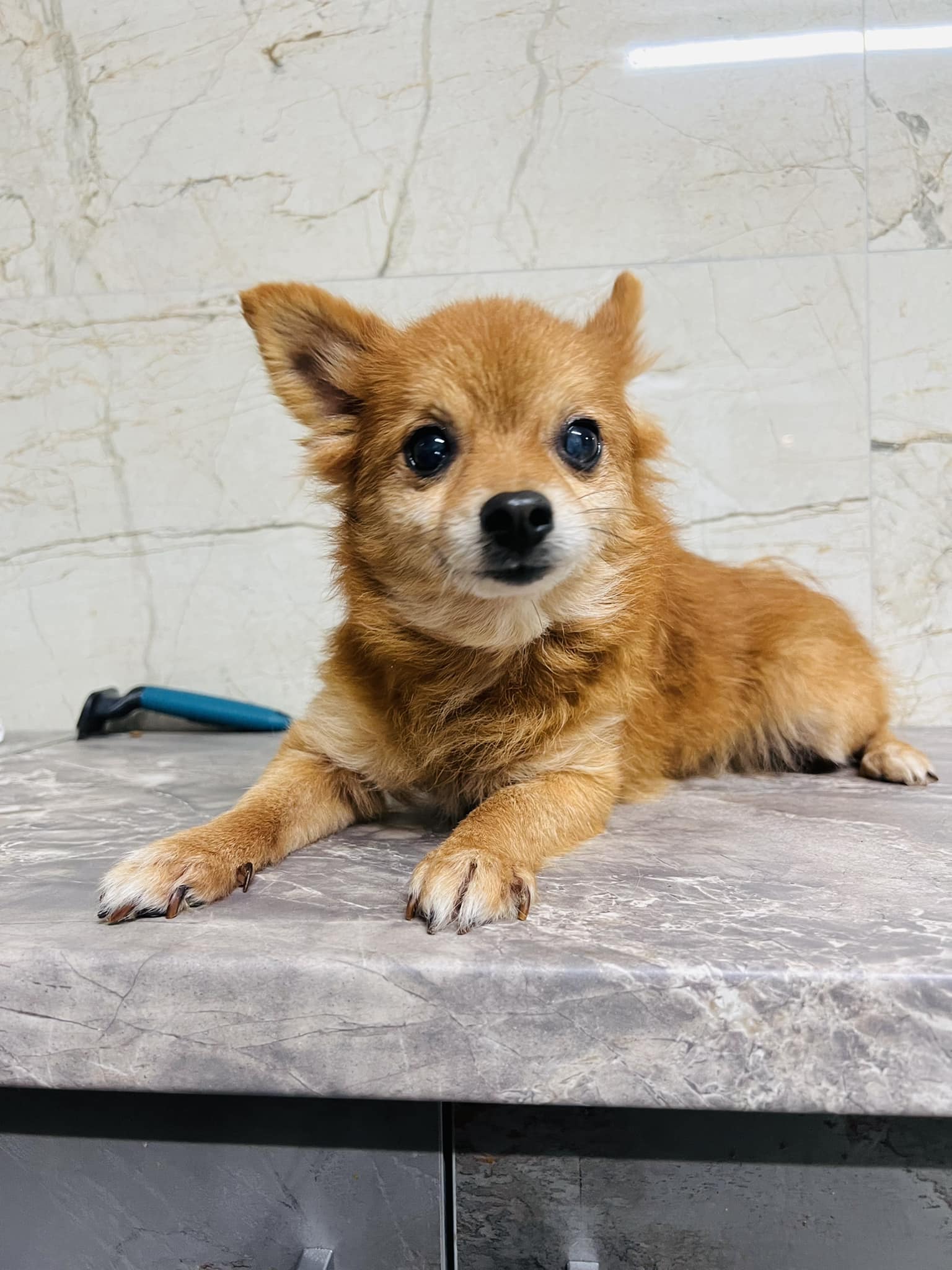 Ich bin eine hübsche Pomeranian Mix Hündin. Meine Zähne werden auch bald wieder schön sein, dann hau ich euch mit meinem Lächeln aus den Socken.