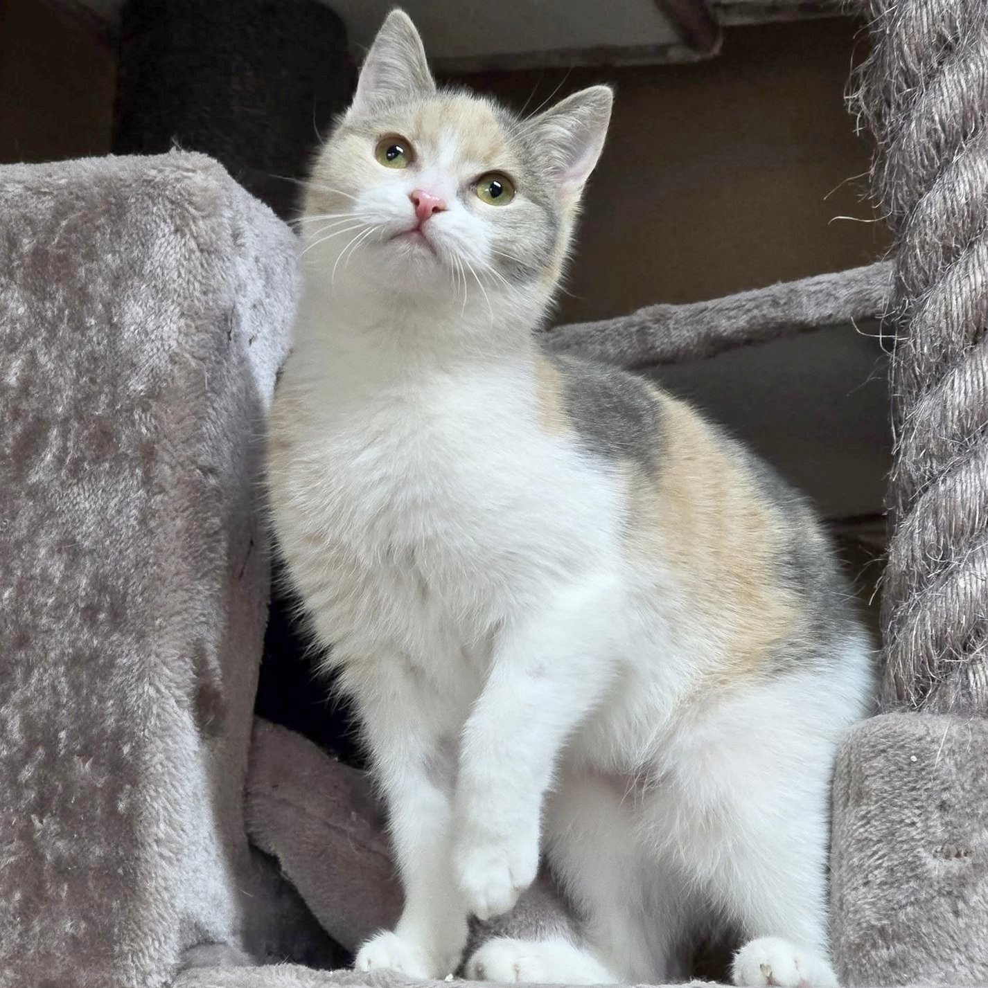 Aliza ist ein ganz zartes, kleines Mädchen. Sie hat ein zutrauliches Wesen und wickelt mit ihrer Art alle um die Pfote. Die Süße liebt es, mit anderen Katzen durchs Zimmer zu flitzen, kleine Spielzeuge zu jagen und sich danach eng an ihre Freunde zu kuscheln. Menschen begegnet Aliza freundlich und offen - Streicheleinheiten genießt sie sichtlich.
