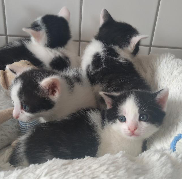 Wir sind im Tierheim geboren. Unsere Mama sollte kastriert werden, aber da hatten wir uns schon in ihren Bauch gemogelt.