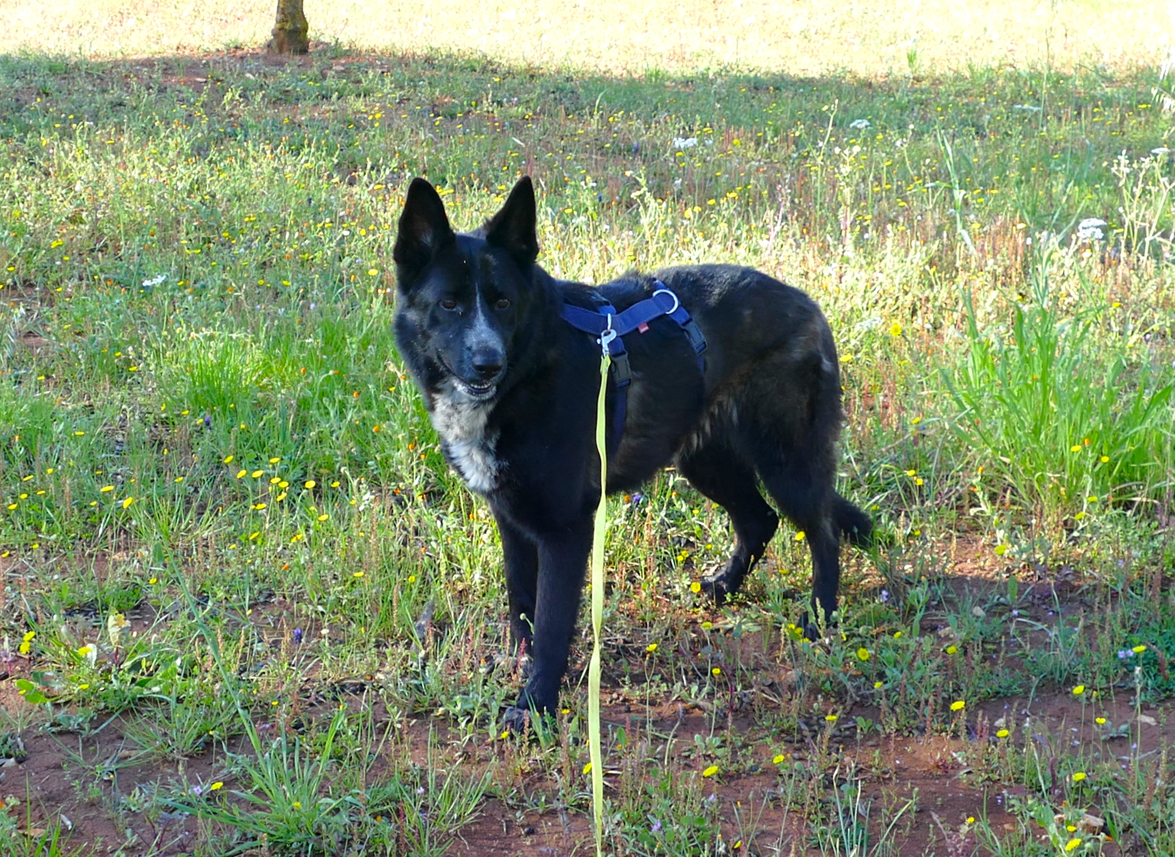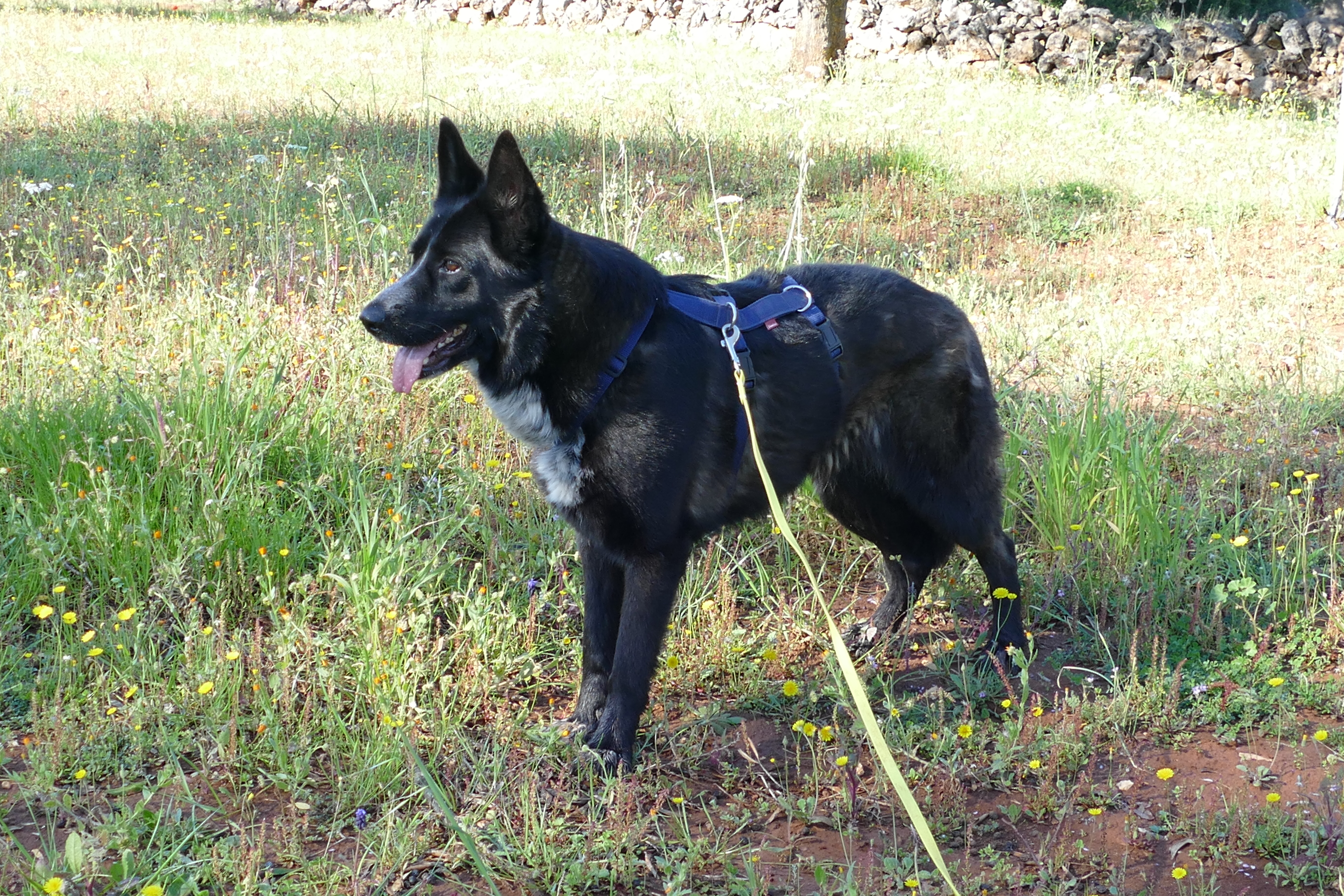 Kelly lebte mit ihrer Schwester auf einem Acker, der Besitzer der beiden kümmerte sich leider nicht gut um die Hunde, deshalb wurde Tony um Hilfe gebeten. Er nahm die beiden auf, seitdem leben sie im Refugium. Kelly, die wunderschöne schwarze Hündin mit den hübschen Stehohren, ist neugierig und aufmerksam. Wenn jemand ans Gehege kommt, kommen beide Schwestern gleich angerannt um zu schauen, wer da ist. Kelly ist etwas schüchterner als ihrer Schwester und braucht länger Zeit, bis sie sich traut ganz her zu kommen. Aber auch Kelly mag die Nähe der Menschen und traut sich nach einigen Minuten. Sie nimmt Leckerlies aus der Hand und mit etwas Geduld und viel Zeit wird sie sicher ein toller Freund fürs Leben. Auch beim Spaziergang ist sie anfangs etwas zögerlich. Nach kurzer Zeit läuft sie aber freudig mit und hat sichtlich Spaß an der Abwechselung. Sie liebt es durch die Wiesen zu streifen. Im Gehege ist Kelly eine ruhige Hündin. Gerne schaut sie dem Treiben in den Nachbargehegen zu oder lässt sich die Sonne auf den Pelz scheinen. Gerne kann Kelly zu einem weiteren Hund oder Katzen ziehen. Kelly ist bereit all das zu lernen. Wichtig ist nur, dass ihre zukünftigen Menschen ebenso lernbegeistert, neugierig, geduldig und bereit dazu sind, genauso viel über die Hundewelt zu lernen, wie Kelly über die Menschenwelt.