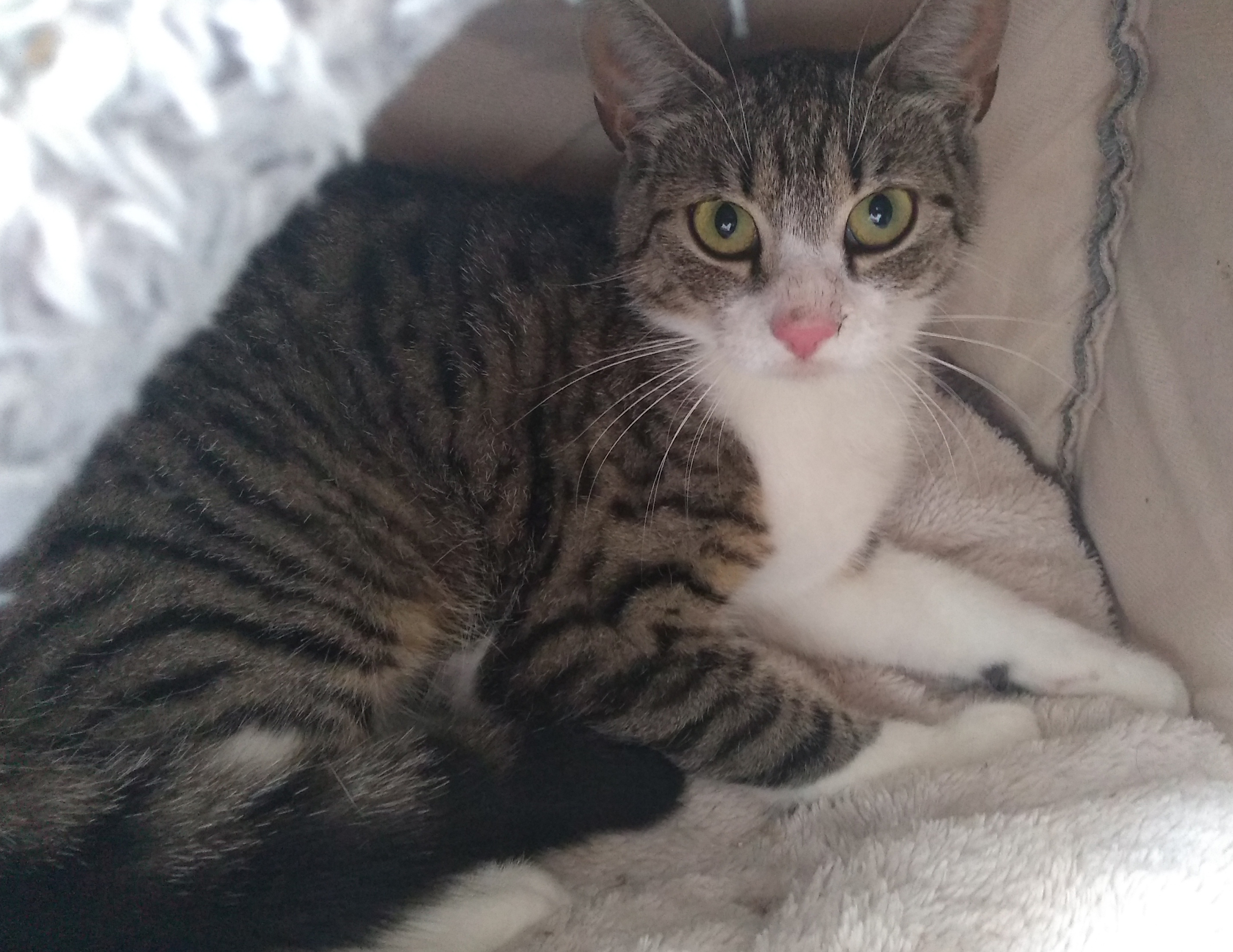 Ich kam als Fundkatze mit meinen zwei Katzenbabys Blacky und Smokey ins Tierheim.