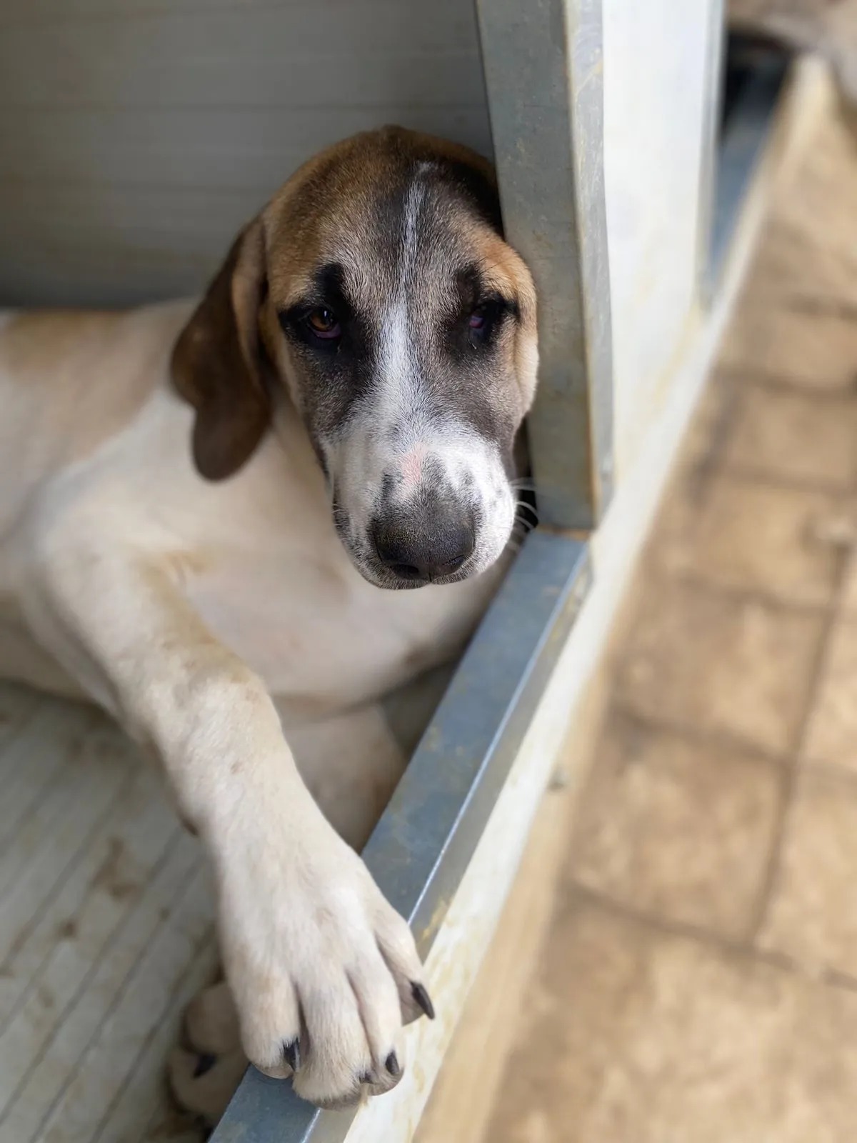 Lusy ist eine hübsche braun-weiß gefärbte Hündin mit sehr individueller Fellzeichnung. Jedes Geschwisterkind hat seine eigene Farbe, bei Lusy mischen sich in die helle Schnauze noch ein paar hübsche schwarze Tupfen.
