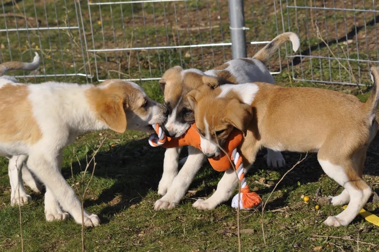 Sie ist eine von zehn Welpen, die mit ihrer Mutter in den Feldern gefunden wurden. Dort waren gerade die Erntearbeiten angefangen und ein Tierschützer hatte Angst vor den landwirtschaftlichen Maschinen, die sicherlich kein Pardon kennen. Damit diese Welpen also nicht verletzt oder gar getötet wurden, sind sie eingesammelt worden und zu einem mit uns befreundeten Tierheim gebracht worden. Dort allerdings konnten sie nicht bleiben, platztechnisch dort unmöglich, da aktuell in Griechenland besonders viele Welpen versorgt werden müssen. So ist Aliki um Hilfe gebeten worden und hat auch diese zehn hübschen Jungs und Mädels übernommen. Das Hunde-Einmaleins beherrschen diese Welpen bereits, Training in der Gruppe ist unvermeidlich. Wer aber möchte ihnen mit dem Verstehen der menschlichen Sprache und dem Erlernen der Befehle wie Sitz, Platz, Warte!…helfen?