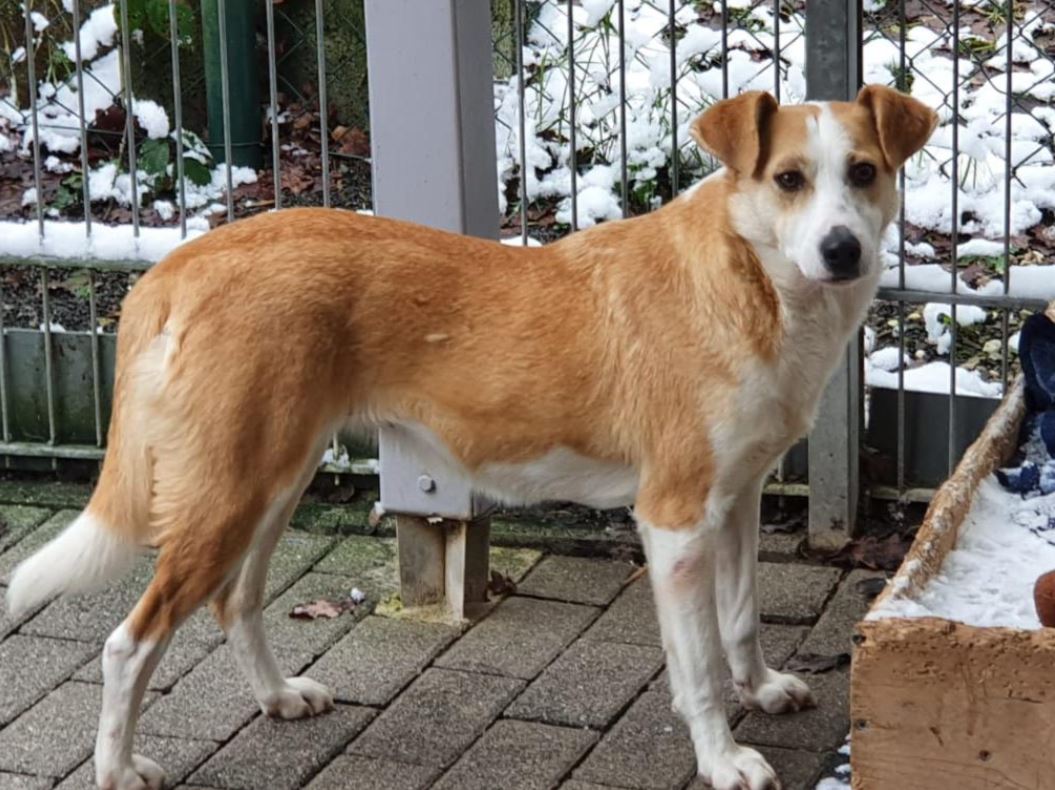 Ophelia wünscht sich ein Zuhause mit einem souveränen Ersthund, von dem sie noch lernen und an dem sie sich orientieren kann.