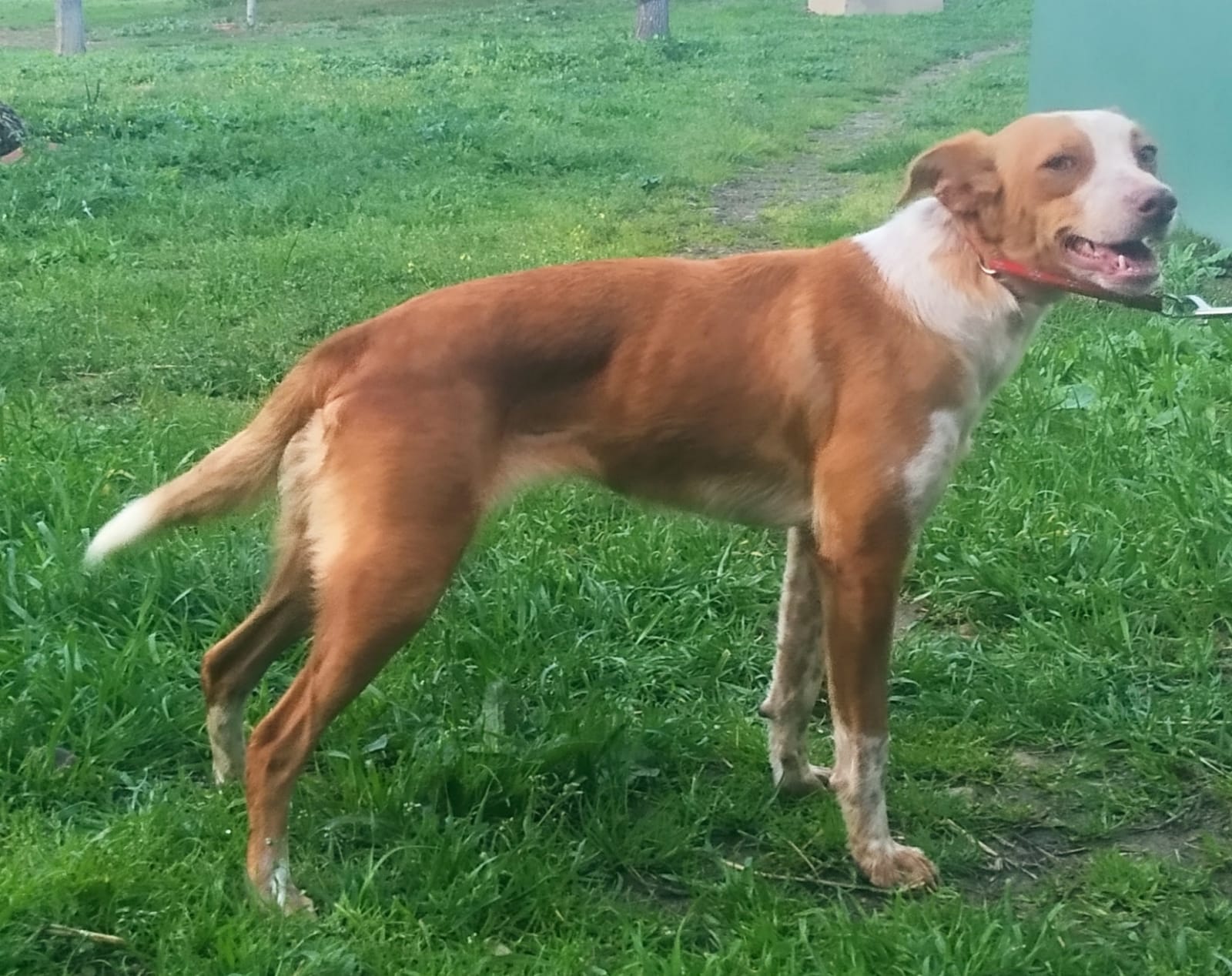 Sie ist sehr jung, aktiv und durchgeknallt. Sie ist fröhlich und spielt immerzu mit allen Hunden. Sie ist kompatibel mit Katzen. Sie braucht eine aktive Familie und einen Hundekumpel zum Spielen. Am Anfang ist sie mit Menschen die sie nich kennt schüchtern, wie alle Hunde die versucht haben zu überleben nachdem sie ausgesetzt wurden. Sie läuft perfekt an der Leine.