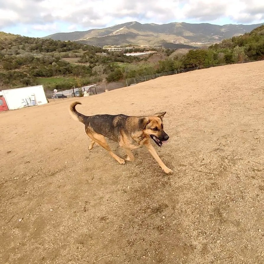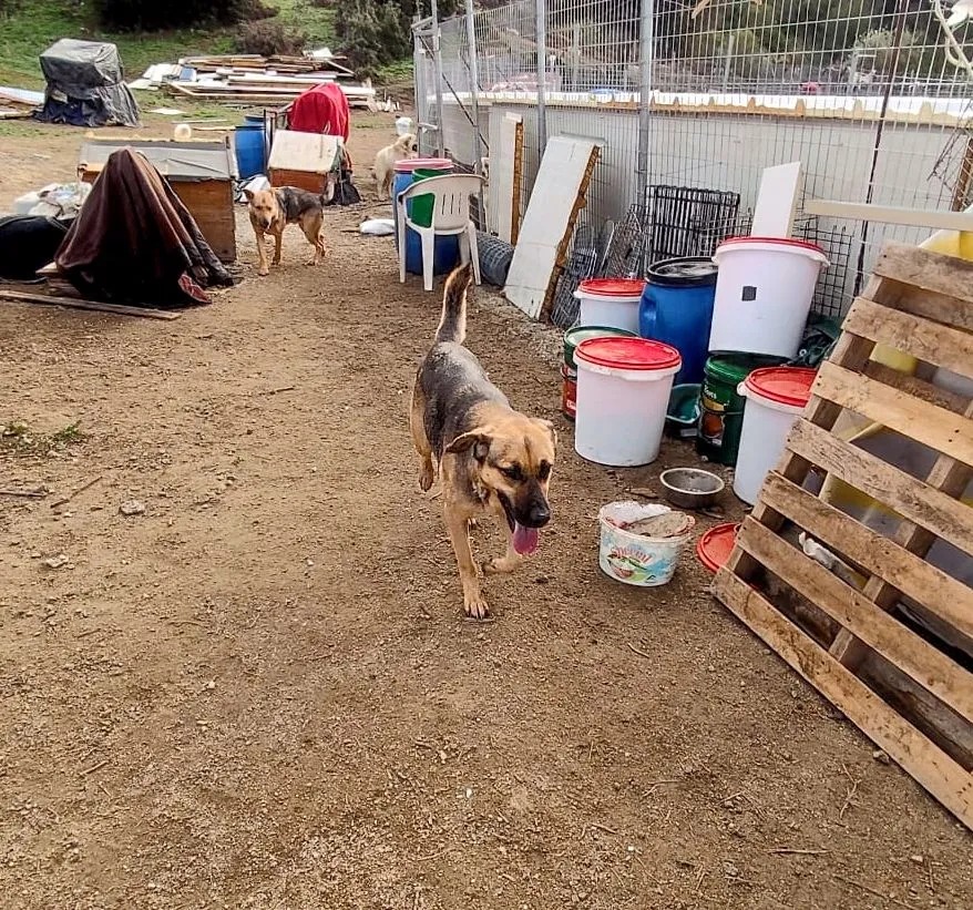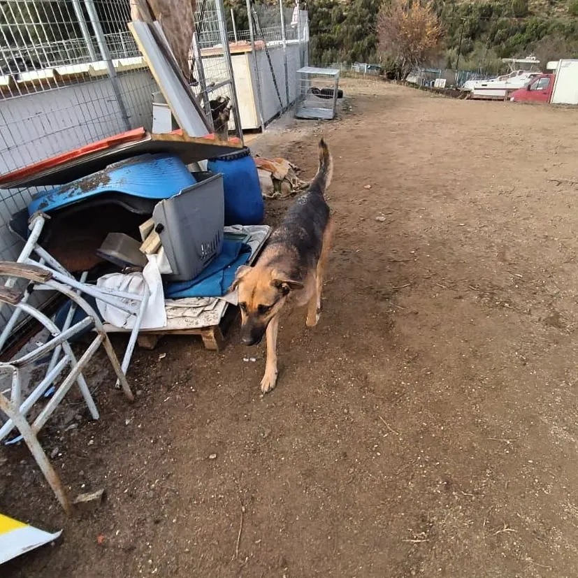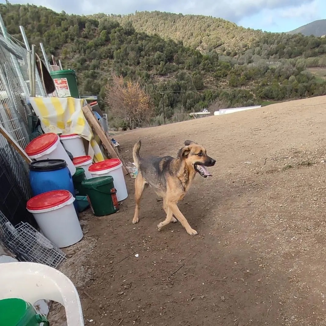 Einige Tagen zuvor hatte Villi diesen Schäferhund-Mix an einem Aussichtsturm auf der Straße zwischen Amfipolis und Kavala gefunden, ganz ängstlich und völlig ausgehungert. Als sie am Tag darauf erneut dort vorbeifuhr, war die Hündin noch immer dort, und kam nun direkt zu ihr. Da sie völlig ausgehungert war, verschreckt, weil von anderen Straßenhunden gejagt und vor den vorbeifahrenden Autos nicht geschützt, hat Villi sie zu Aliki gebracht. Sie ist eine uns Menschen sehr zugewandte Hündin, liebt es, gestreichelt zu werden. Paula verträgt sich mit anderen Hunden und auch mit Katzen. Ja, sie zeigt deutlich an, wenn sie ihr Geschäft erledigen muss. Erste Spaziergänge mit ihr funktionieren sehr gut, selbst eine offene Treppe hat sie, an der Leine folgend, bereits gemeistert. Paula geht allem streit aus dem Weg, sie kennt die Hundesprache und wünscht sich eine Familie, gerne mittleren alters, trubel brauch Paula nicht.
