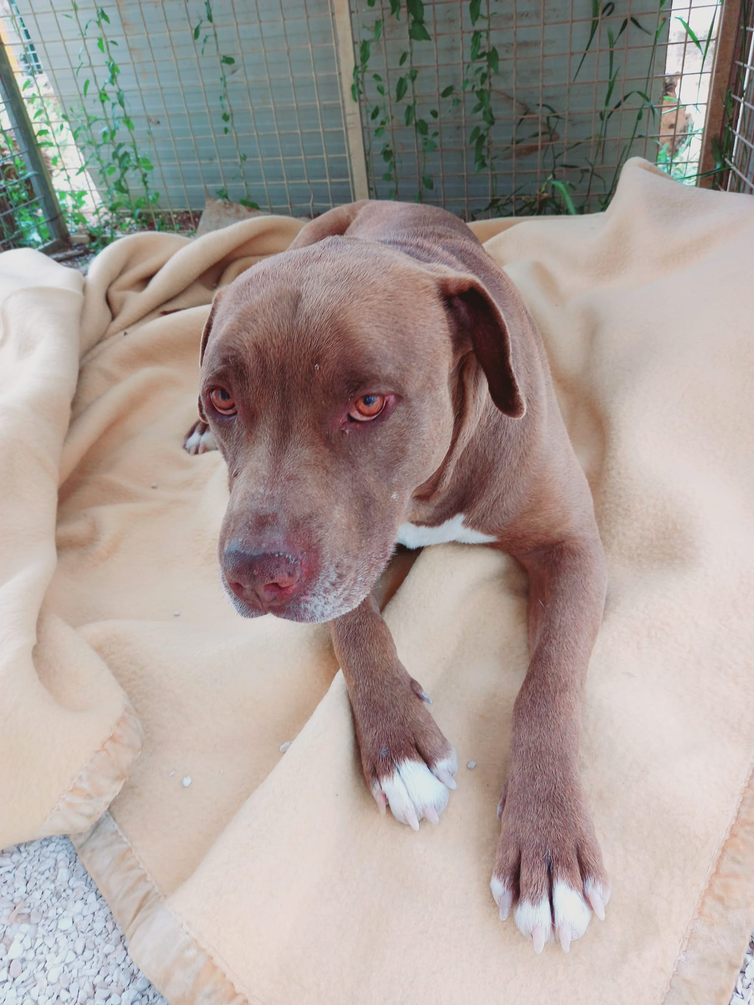 Simone hat das Pech, als Pitbull auf die Welt gekommen zu sein. Aufgrund seiner Rasse darf er nicht nach Deutschland vermittelt werden und deshalb sucht er ein Plätzchen in der Schweiz.