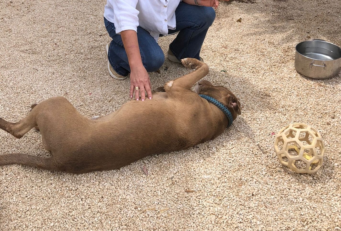Simone liebt Spielzeug und spielt gerne mit dem Ball oder auch mit leeren Wasserschüsseln, wenn nichts anderes zur Verfügung steht. Auch mit dem Kong beschäftigt er sich gerne und freut sich über alles, was man ihm anbietet. Ansonsten ist Simone ein eher ruhigerer Hund ohne jegliche Aggression, der sich aber über jede Zuwendung freut und Beschäftigung dankbar annimmt. Manchmal hat Simone auch Flausen im Kopf und klaut gern mal die kleine Schaufel aus der Hand, damit man mit ihm spielt.