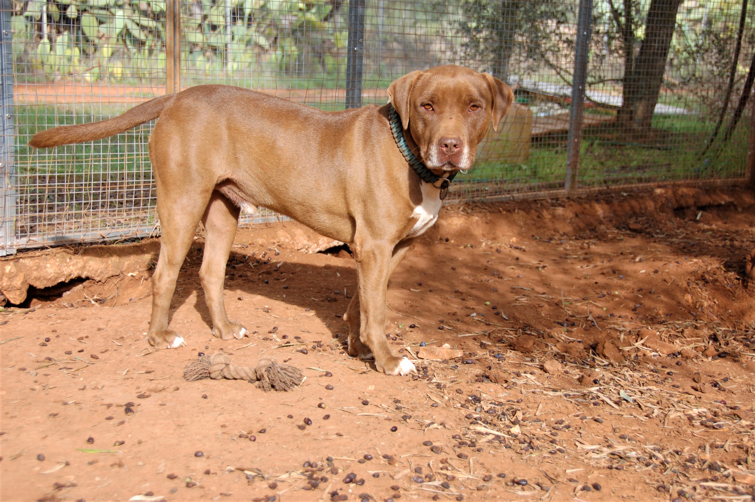 Simone lebte über ein Jahr im städtischen Tierheim in Manduria, wo er so gut wie möglich umsorgt wurde. Doch leider wollte ihn niemand adoptieren und immer wieder war es kurz davor, dass Simone - wegen Überfüllung des Tierheims – ins Canile hätte müssen, aus dem es sicher kein Entkommen mehr für den wunderbaren Rüden gegeben hätte. Mittlerweile hat Simone ein Plätzchen bei Tony im Refugium gefunden und macht sich von hier aus weiter auf die Suche nach einer Familie.