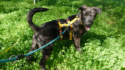 Die sechs verstehen sich mit allen prächtig und sind sehr menschenbezogen. Tassilo ist etwas ruhiger spielt gerne mit seinen Geschwistern und liebt es mit den Menschen zu kuscheln. Tassilo ist seit kurzem im Refugium, zusammen mit seiner Schwester, in einem Gehege. Das Größte für ihn ist ein Spaziergang draußen. Er flitzt über die Wiesen und ist schon sehr gut abrufbar. Tassilo achtet immer darauf, wo seine Bezugsperson ist und entfernt sich nicht weit. An der Leine läuft er schon fast wie ein Profi. Das Leben der Hundekinder im Refugium besteht aus Herumtollen, Fressen und Schlafen. Am liebsten spielen sie miteinander und jedes neue Spielzeug wird dankbar angenommen. Mit den anderen Hunden und auch mit den Katzen verstehen sie sich gut und sind verträglich. Tassilo ist noch jung und benötigt viel Zeit und Geduld, damit er alles Schritt für Schritt kennenlernen kann, was die große Welt mit sich bringt. Bisher konnten er noch nicht viel erleben und er warten nun darauf, adoptiert zu werden.
