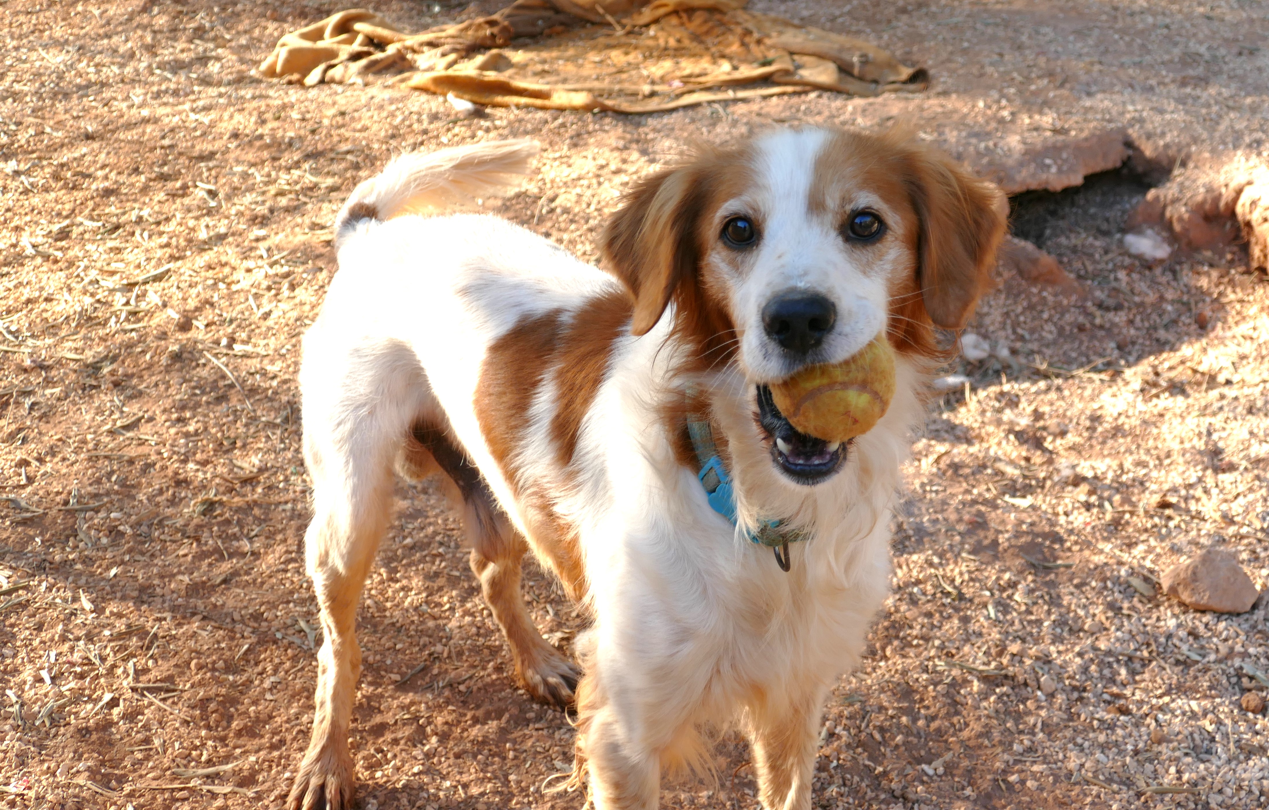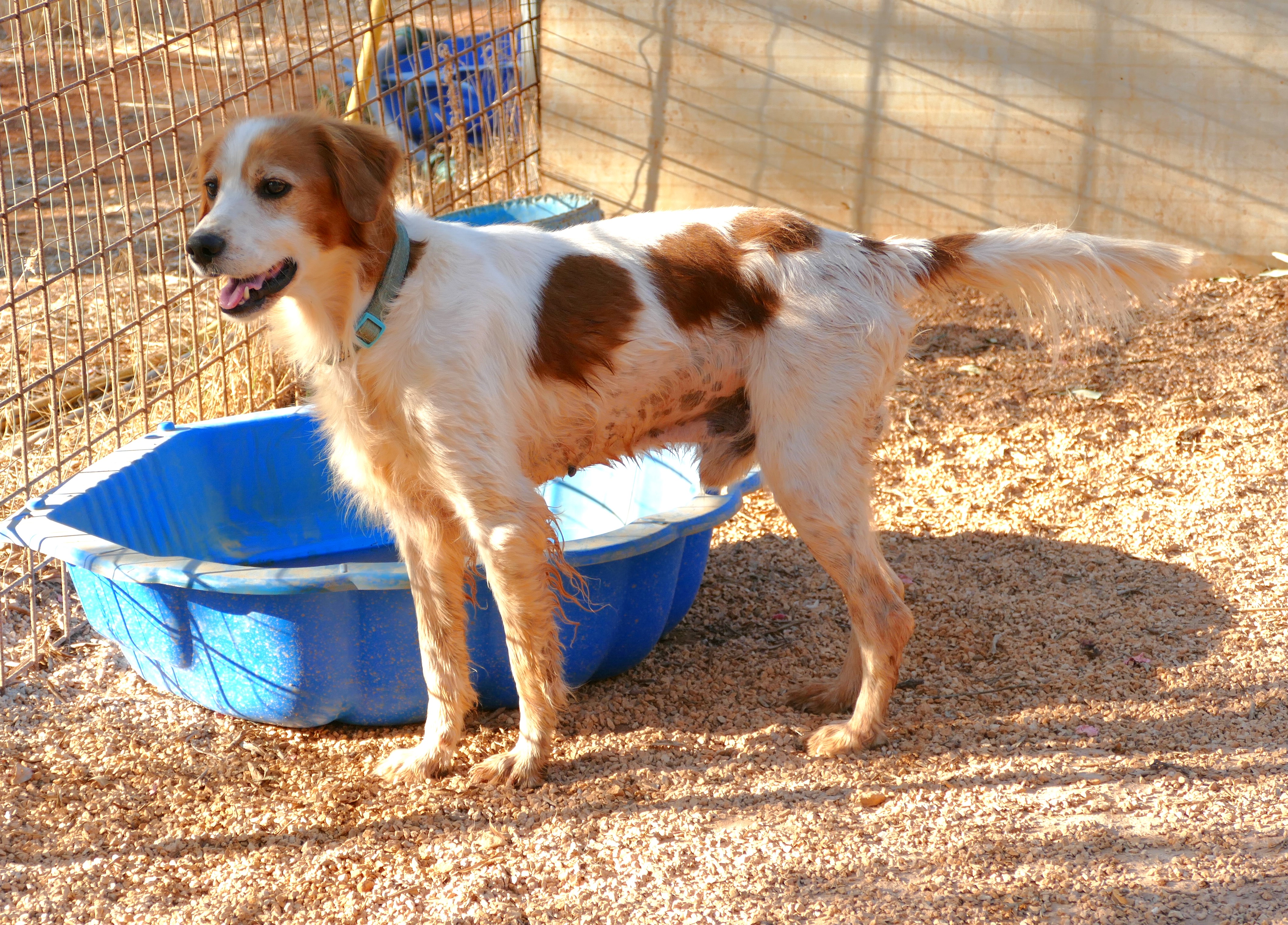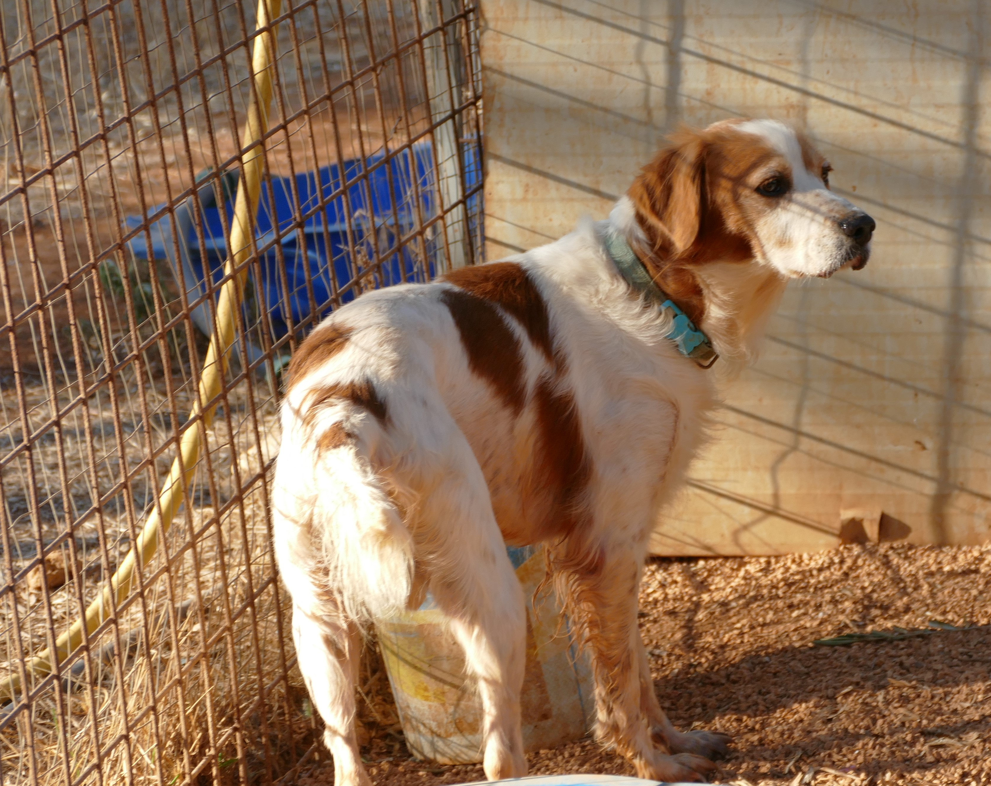 Die Klinik in Taranto fragte, ob Tony den Breton-Mix Theo übernehmen könnte. Dieser hatte schon eine traurige Geschichte hinter sich. Angeblich wurde er von seinem Besitzer zur Betreuung zu jemandem gebracht und holte ihn von dort einfach nicht mehr ab. Die Betreuungsperson wusste sich nicht besser zu helfen, als Theo einfach auszusetzen. Glücklicherweise wurde er aufgefunden, halb verhungert, und kam so in die Klinik. Da er dort nicht ewig bleiben konnte, wurde Tony um Hilfe gebeten.